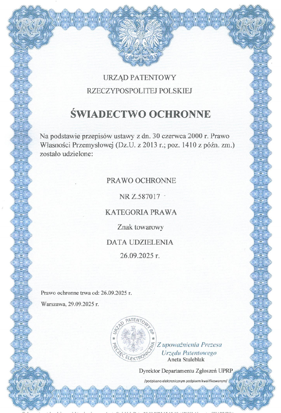 MIKO ENERGY Ltd., spółka z branży odnawialnych źródeł energii z siedzibą w Polsce, oficjalnie uzyskała krajową ochronę znaku towarowego na terytorium Rzeczypospolitej Polskiej. W dniu 26 września 2025 r. firma otrzymała Świadectwo Ochronne na Znak Towarowy wydane przez Urząd Patentowy Rzeczypospolitej Polskiej, potwierdzające prawną ochronę marki MIKO ENERGY na rynku polskim.
